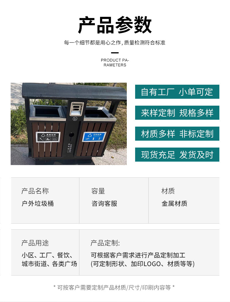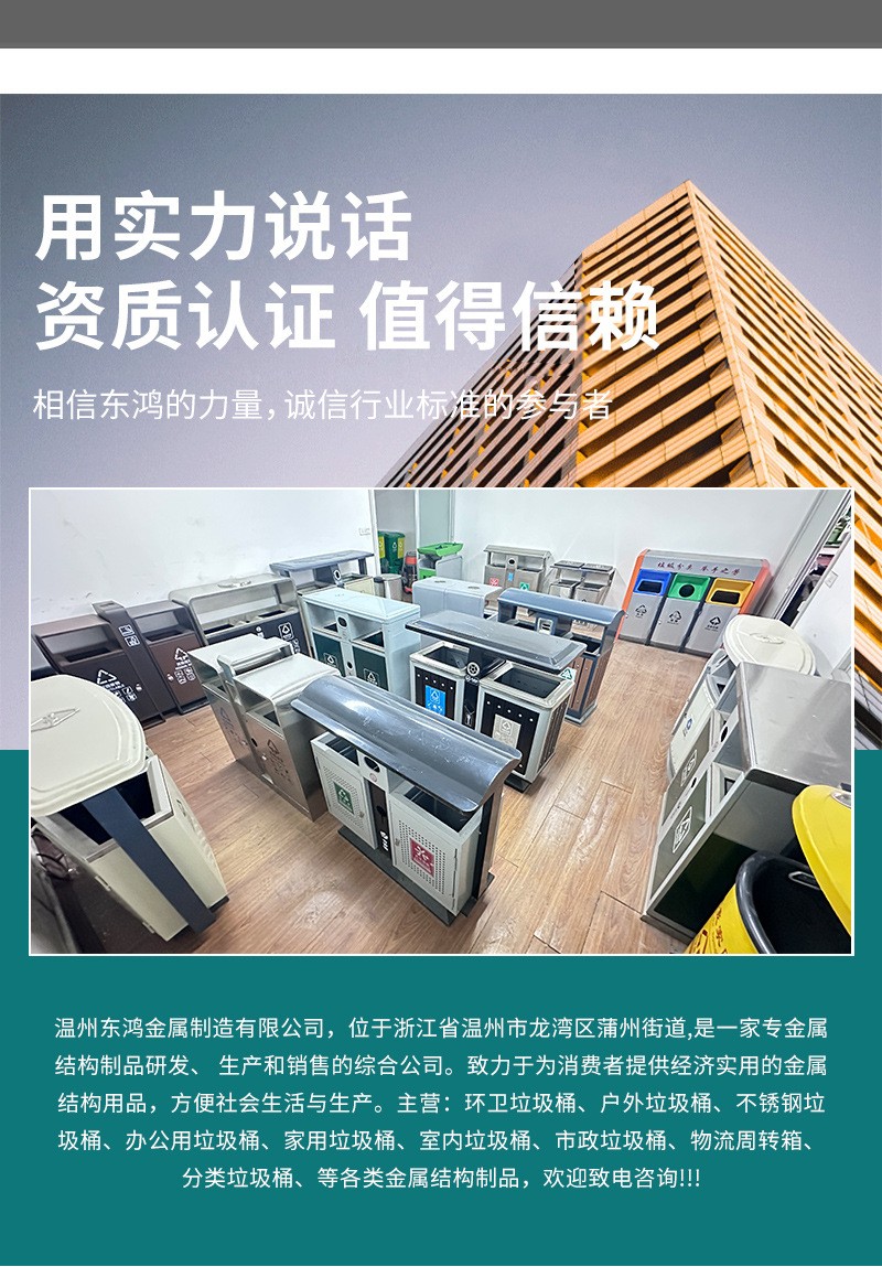 溫州東鴻金屬制造有限公司提供戶外果皮箱垃圾箱、鍍鋅板雙桶環(huán)衛(wèi)垃圾箱、公園景區(qū)商用垃圾箱適用于小區(qū)、工廠、餐飲、城市街道、各類廣場(chǎng)、企業(yè)單位、花園、公園、學(xué)校、碼頭、風(fēng)景旅游區(qū)等公共場(chǎng)所,可按客戶的需要定投產(chǎn)品尺寸、材質(zhì)和印刷內(nèi)容,咨詢電話0577-88321654。
