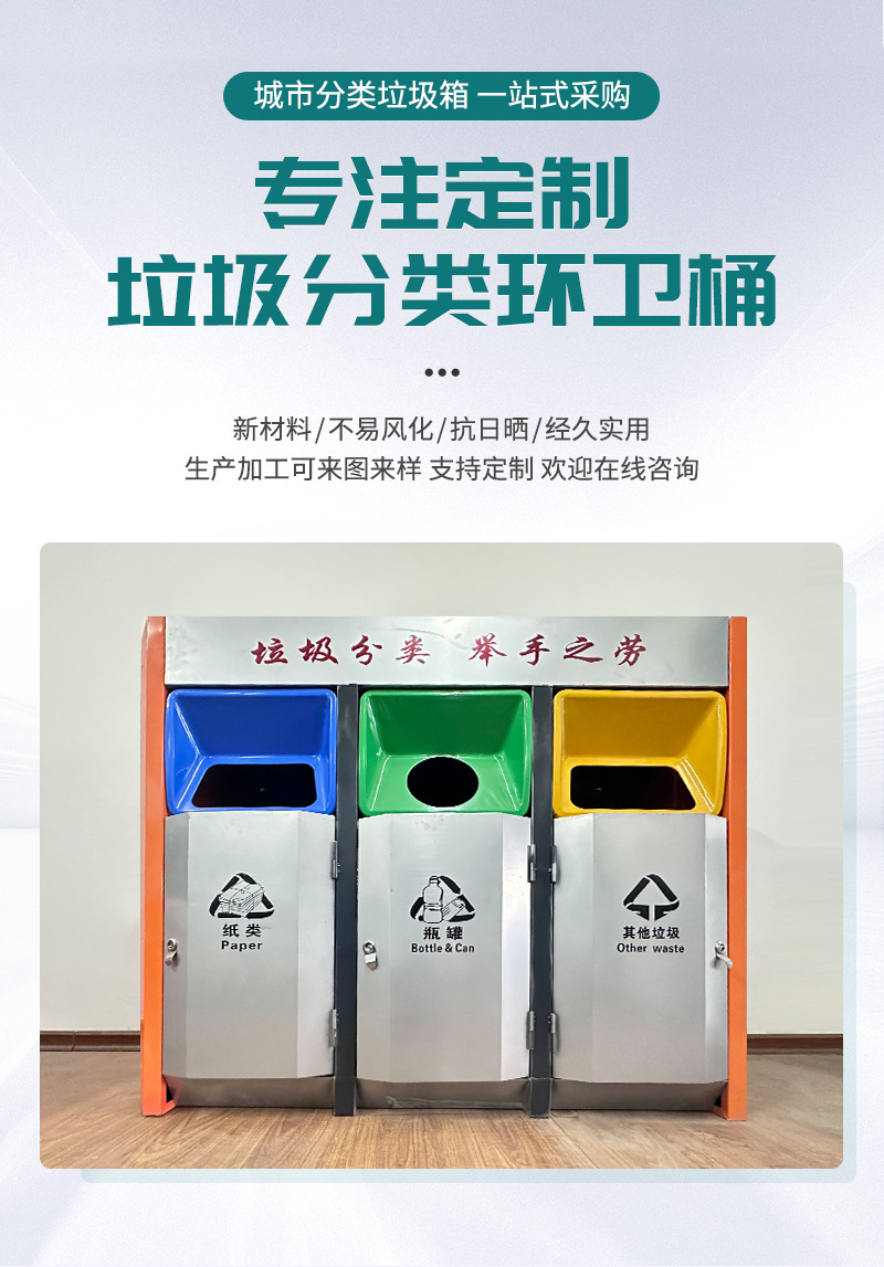 您當(dāng)前的位置:首頁 / 產(chǎn)品中心 / 環(huán)衛(wèi)戶外垃圾箱/桶系列 / 戶外三分類不銹鋼垃圾箱/桶
